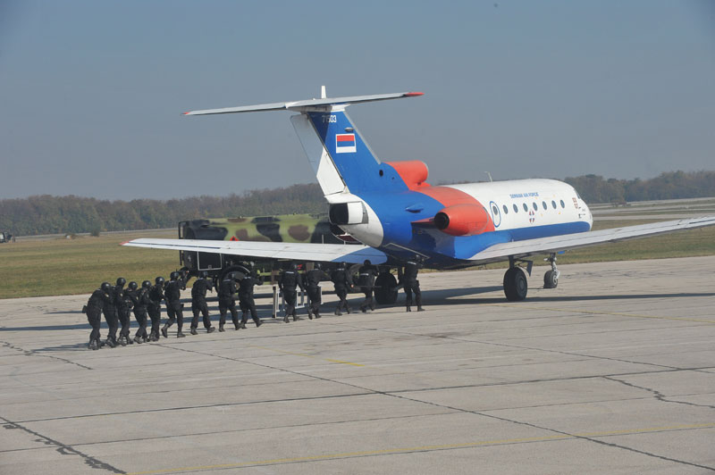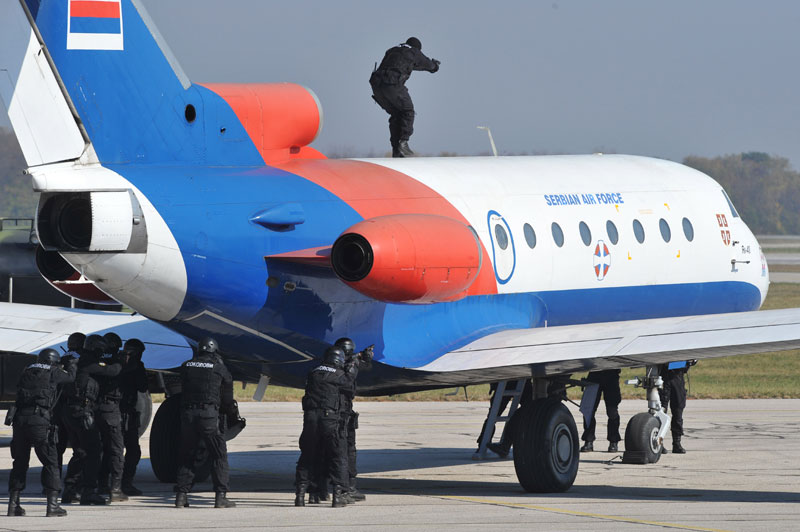 Pripadnici bataljona vojne policije za specijalne namene "Kobre" napale su motorna vozila, a posle blokade teritorije nastavljena je protiv teroristička operacija upadom u zauzete objekte na aerodromu i operacija je nastavljena neutralisanjem terorista.