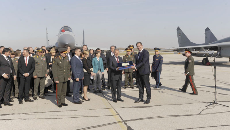 Predsednik Srbije Aleksandar Vučić i ruski ministar odbrane Sergej Šojgu simbolično su danas, nakon prikaza "Sloboda 2017" na batajničkom aerodromu, obavili primopredaju migova koje je Srbija nabavila od Rusije.