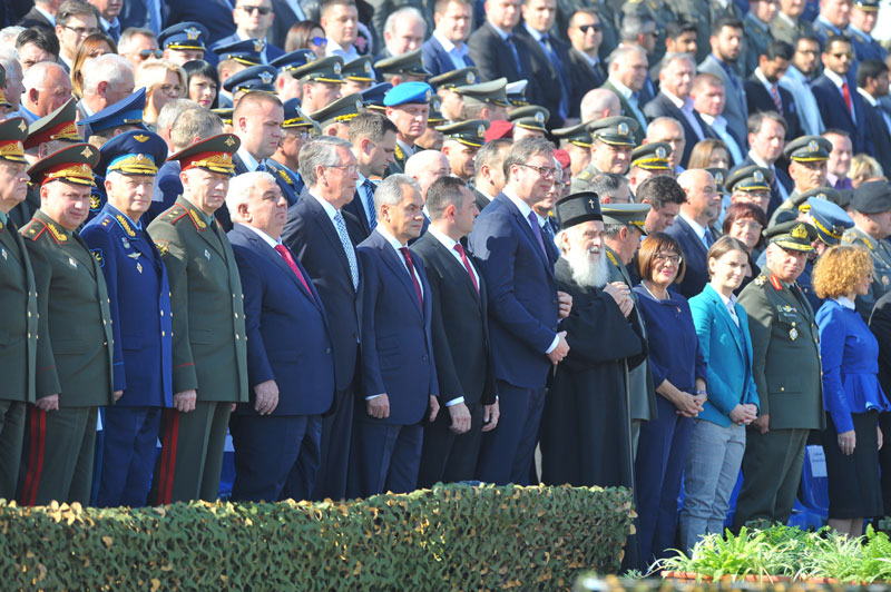 Prisustvuje najviše državno i vojno rukovodstvo Srbije, ruski ministar odbrane Sergej Šojgu, predsednik Republike Srpske Milorad Dodik i predstavnici diplomatskog kora.
