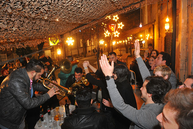 Jedno od najveselijih mesta za doček Nove godine u prestonici je svakako Skadarlija. Beograđani i njihovi gosti su iskoristili lepo vreme, pa su se mnogi, uglavnom mladi, veselili uz trubače u baštama restorana.