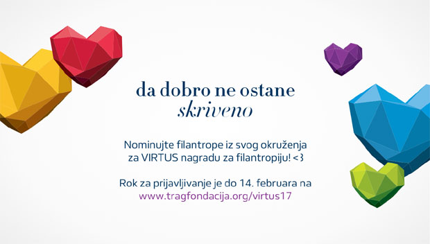 Prijave za konkurs su počele 16. januara i trajaćesve do 14. februara 2018. godine. Višeinformacija o prijavi i samoj nagradi možete pronaćina sledećem linku: www.tragfondacija.org/virtus