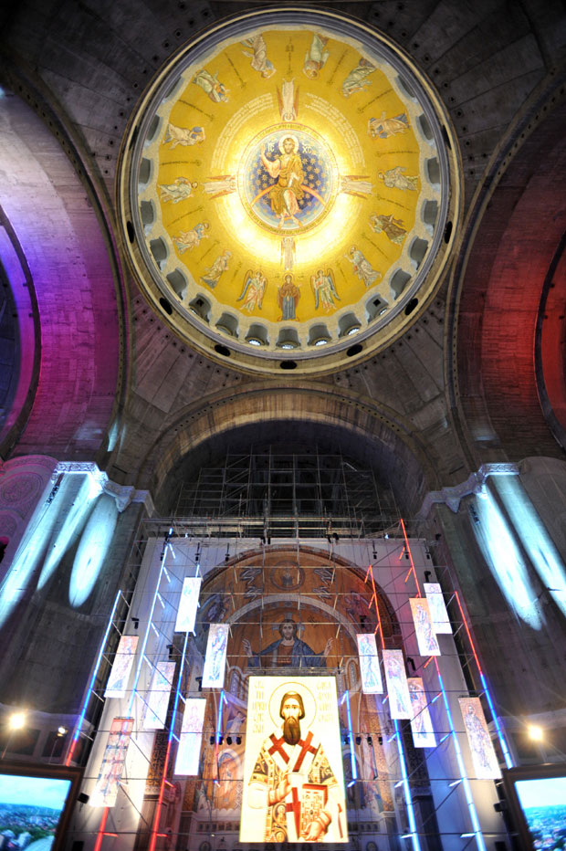U svetinji na Vračaru u Beogradu sve spremno za drugu fazu obimnih radova na ukrašavanju enterijera. Mozaik će se "spustiti" sve do oltara. Tim umetnika Muhina pripremio skice i proračune