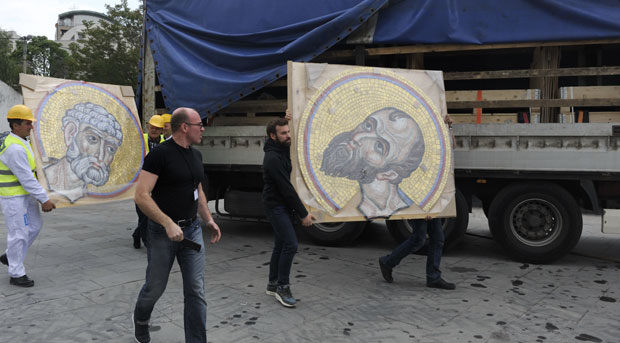Pripreme za novi graditeljski i umetnički izazov u najvećoj crkvi srpskog naroda u punom su jeku. Gigantska skela sa koje su neimari postavili 40 tona mozaika pod glavnu kupolu, već je premeštena na novu lokaciju - naspram glavnog ulaza u Hram. Ona će biti oslonac za dekorisanje više od 2.000 kvadrata pandantifa i oltarske apside, kojom će dominirati lice Hrista Spasitelja. Ovaj posao trenutno je najvažniji jer će on pred očima posmatrača povezati mozaički ukras od krova do nultog nivoa.