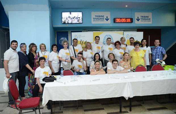 Kako je plivanje najbolji vid rehabilitacije koje blagotvorno deluje na neuromišićni sistem obolelih, na bazenu Tašmajdan organizovana je neobična štafeta u plivanju, na kojoj su zajedno učestvovali najbolji srpski plivač i državni reprezentativac Velimir Stjepanović, dr Boris Ukropina iz KC Srbije, prvak Beogradskog dramskog pozorišta Petar Benčina i oboleli od MS Dragan Birač.