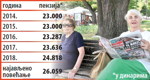 OD novembra 2014. godine, kada je donet Zakon o privremenom umanjenju penzija, najsiromašnijim kategorijama penzionera čekovi su uvećani tri puta, kao i svima ostalima. Zaključno sa novom povišicom, oni će dobiti 13,3 odsto više nego što su imali pre tri godine.