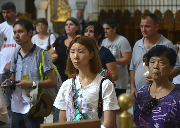 GRUPA japanskih turista, koja je ušla u Crkvu Svetog Marka, danas tokom pomena, ne znajući o čemu je reč, osetila je tešku atmosferu prigušenog bola. Ćuteći, pognutih glava oni su s poštovanjem stali među malobrojne Srbe i odali poštu.