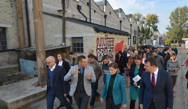 U pratnji domaćina, gradonačelnika Miloša Vučevića i predsednika Pokrajinske vlade Igora Mirovića, kao direktora Fondacije "Novi Sad 2021" Nemanje Milenkovića, predsednica Vlade bila je zadivljena transformacijom pre više od četiri decenije utihnule fabrike za bojenje svile u novootvoreni jedinstveni samoodrživi centar kreativnosti.