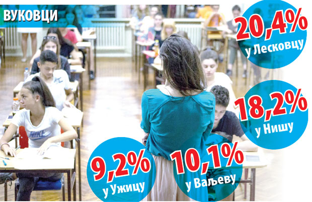- Analizom po školskim upravama može se utvrditi da postoji velika razlika u broju vukovaca - navodi se u izveštaju. - Tako ih najviše ima u Leskovcu (20,4%), Nišu (18,2%), Kosovskoj Mitrovici (16,3%) i Jagodini (16,1%). Najmanji procenat učenika vukovaca beleži se u upravama Užice (9,2%) i Valjevo (10,1%).