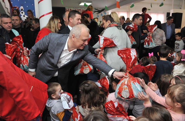 Vesić je u predškolskoj ustanovi "Naša radost" u Leposaviću podelio deci novogodišnje paketiće povodom pravoslavne Nove godine.