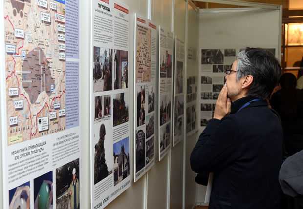 - Fotografije prikazuju stradnja civila, uništavanje bolnica i svega onoga što nije bio voljni cilj - rekao je general Milomir Miladinović. - Efekti razaranja, rušenja, dugo će se još osećati. Prema nekim podacima, na našu zemlju tokom bombardovanja bačeno je više bombi u tako malo dana i na tako malom prostoru, nego što je bacio Hitler tokom Drugog svetskog rata. Izložba će dopirineti da ovo bude prodor istine u svet.