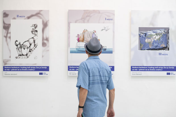 Prva zajednička ekološka kampanja „Pogledaj oko sebe“, koju su osmislili Ministarstvo za evropske integracije i Delegacija Evropske unije u Republici Srbiji, sa Ministarstvom za zaštitu životne sredine, upravo je i pokrenuta sa ciljem da se promoviše značaj zaštite životne sredine, podigne svest o važnosti ove teme i na akciju pokrenu građani, zajednice i institucije u Srbiji kako bi se angažovali i postali aktivni u zaštiti životnog okruženja u lokalnim zajednicama. Kampanja je počela debatom o stanju životne sredine u našoj zemlji 12. juna, da bi zatim bio organizovan Trash challenge, dok su u Užicu, Šapcu i Subotici organizovane manifestacije „EU zeleni dan“, jednodnevni obilasci ekoloških postrojenja izgrađenih uz podršku EU. U sklopu kampanje organizovan je i nacionalni konkurs karikatura i kratkog stripa “Ovo je Zemlja za nas – pokreni se za životnu sredinu“, ali i postavljen mural beloglavog supa od recikliranog materijala, na zgradu Osnovne škole „Ivan Goran Kovačić“ u Beogradu.