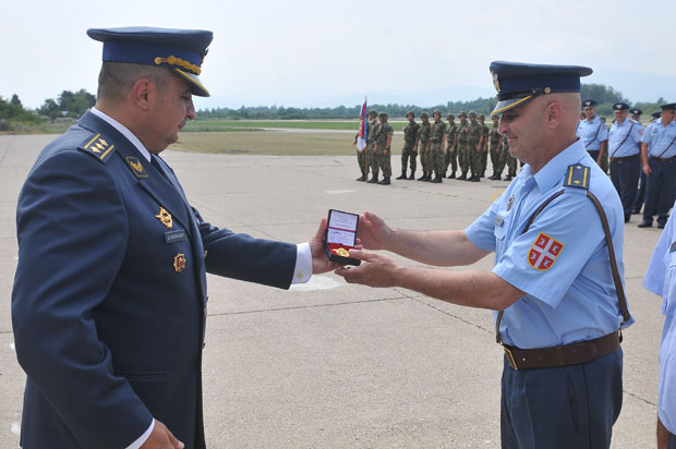 POVODOM Dana avijacije, ovom prilikom majoru Saši Nikoliću uručen je zlatni letački znak, a nagradnim odsustvima, prigodnim knjigama i pohvalama nagrađeno je još desetak pripadnika 98. vazduhoplovne brigade za uspešno obavljanje postavljenih zadataka.