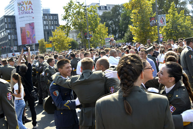 Tradicionalnim bacanjem šapki u vazduh u subotu je ispred Doma Narodne skupštine završena promocija najmlađih oficira Vojske Srbije.