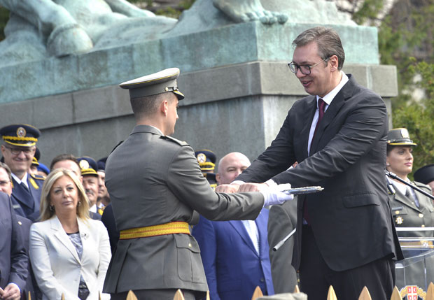 Posle napornog rada i puno odricanja, naše studije smo priveli kraju i stekli mnoga korisna znanja i veštine koje ćemo primeniti u očuvanju mira i slobode Srbije, izjavio je najbolji kadet Vojne akademije Stefan Milićević.
