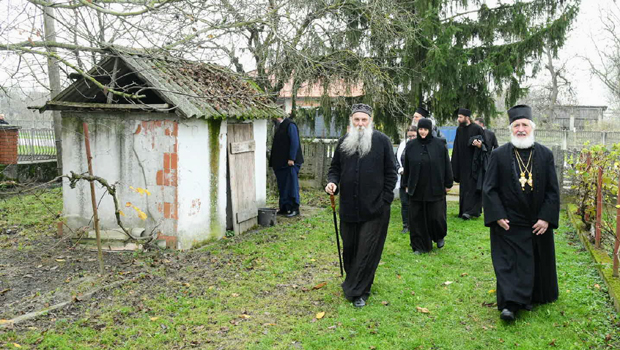 Posle liturgije, lomljenja slavskog kolača, u susret velikom pravoslavnom prazniku - Đurđicu, vladika Jovan je goste i kućanske domaćine koji su ovde ostali i opstali da traju, poveo u obilazak obnovljenog patrijarhovog imanja. U kuću, u njivu, u novi parohijski dom...