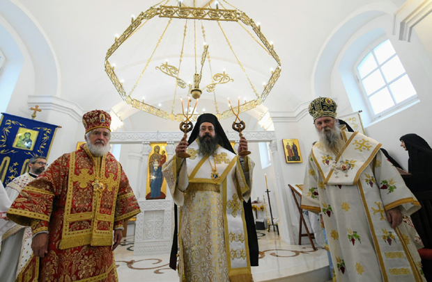 Zvona sa novog tornja od ranog jutra su prizivala na liturgiju. Odavno nije bilo takve punoće u zvuku koji se razlegao zavičajnom, patrijarhovom ravnicom. Odavno taj zvuk nije okupio toliko Srba da im crkva, barem na jedan dan, bude istinsko pribežište i utočište.