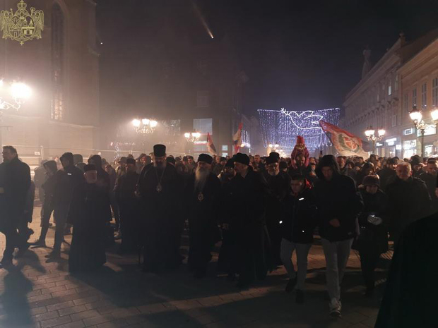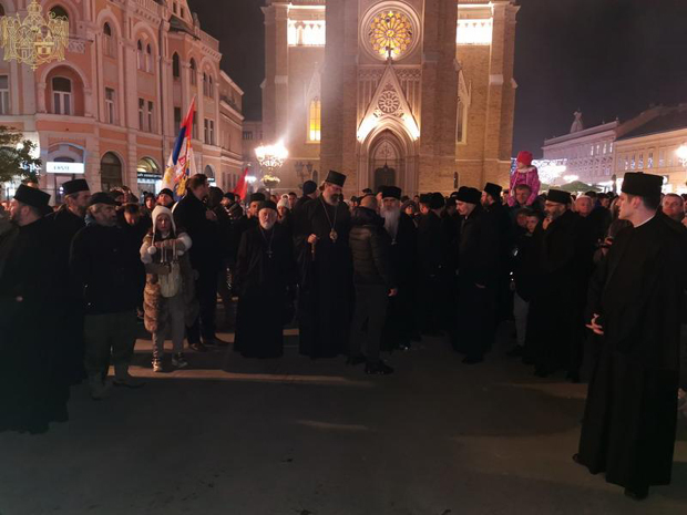 Mirnom šetnjom od Trga Republike do Gradske kuće, građani Novoga Sada, predvođeni svojim Episkopom, iskazali su odlučno protivljenje nasilnom oduzimanju crkava i manastira, i uputili molitve Gospodu da urazumi predstavnike vlasti u Crnoj Gori da prekinu sa nasiljem i otimanjem imovine Srpske Pravoslavne Crkve u Crnoj Gori - navodi se u saopštenju Eparhije bačke.