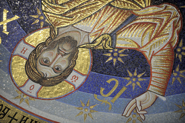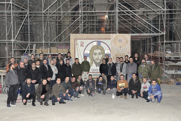 Sin Božji sa oreolom iznad glave prečnika većeg od šest metara, u oltarskoj apsidi, najdominantnija je figura koja pod kupolom krasi unutrašnjost najvećeg hrama srpskog naroda. Ruski i srpski neimari gotovo u potpunosti završili su grandiozne radove na postavljanju mozaika, što je najveći posao pred osvećenje Hrama planirano za jesen 2020. godine.