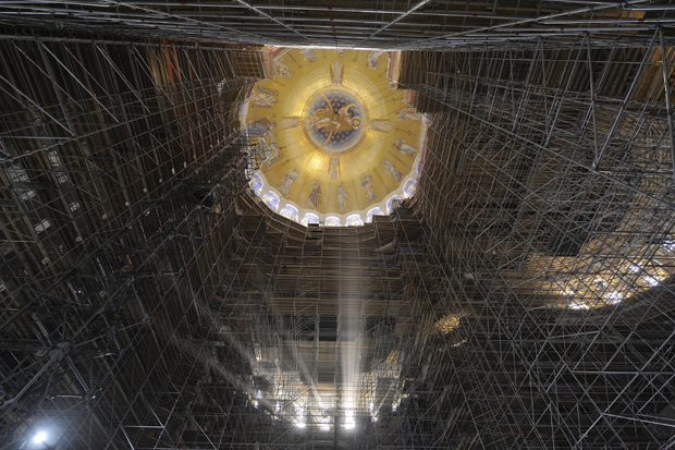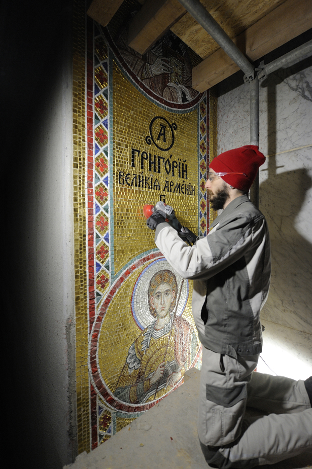 "Novosti" u Hramu Svetog Save na Vračaru, gde se privodi kraju najveći mozaički poduhvat crkvenog graditeljstva u svetu. Pedesetak ruskih umetnika i njihove srpske kolege završavaju ukrašavanje unutrašnjosti