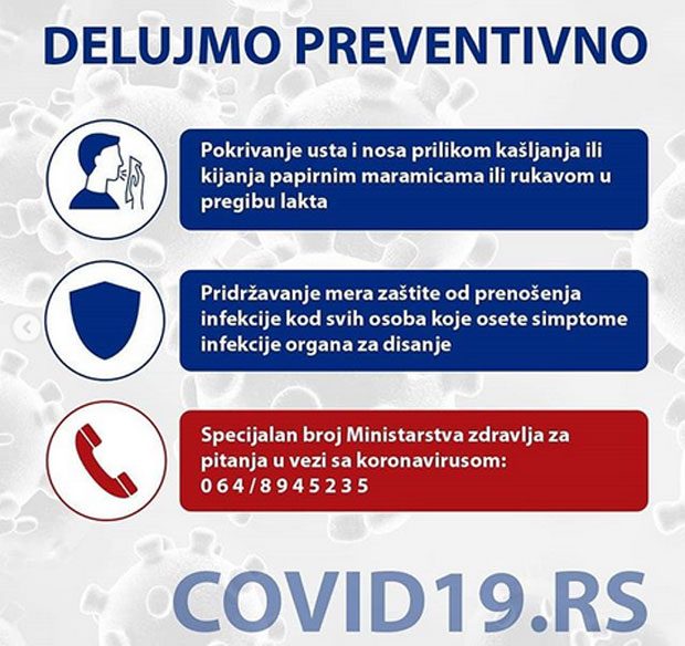 U tom smislu, podsetio je da su osnovne preventivne mere pojačana i česta higijena ruku, pranje vodom i sapunom najmanje 20 sekundi.