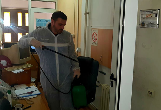 Priboj – U skladu sa odlukom Štaba za vanredne situacije u Priboju je počela preventivna dezinfekcija objekata javnih ustanova koje se finansiraju iz budžeta lokalne samouprave, uključujući zgradu suda i policije.