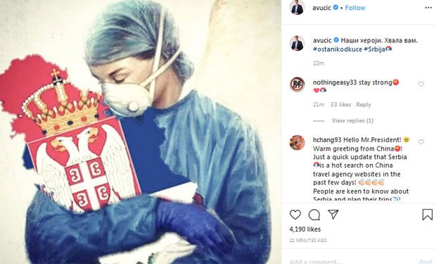 Predsednik Srbije Aleksandar Vučić objavio je fotografiju posvećenu zdravstvenim radnicima u Srbiji