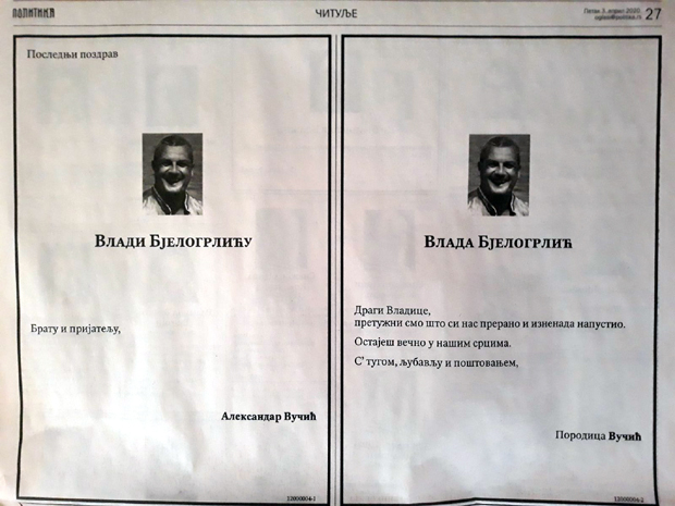 Predsednik Srbije uputio je poslednji pozdrav svom prijatelju iz detinjstva koji je preminuo od posledica korona virusa