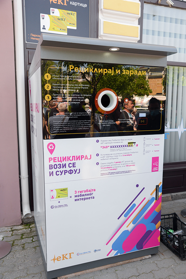 Sponzorstvom ovakvog projekta, omogućili smo Kragujevčanima da po prvi put u Republici Srbiji za ambalažu koja se reciklira budu nagrađeni. Ne samo što će dobiti sedam dinara po ambalaži na eKG kartici, već smo omogućili društveno odgovornim licima da prilikom reciklaže i aktivacije “Globaltel” broja dobiju 3 gigabajta za surfovanje internetom, a za svaki naredni dinar od reciklaže, dobiju 10 megabajta. Zadovoljni smo što smo prepoznati kao kompanija koja podržava inovacije, ali i zaštitu ekološke sredine – rekao je Aleksandar Stankov, direktor “Globaltela”.