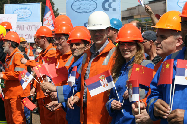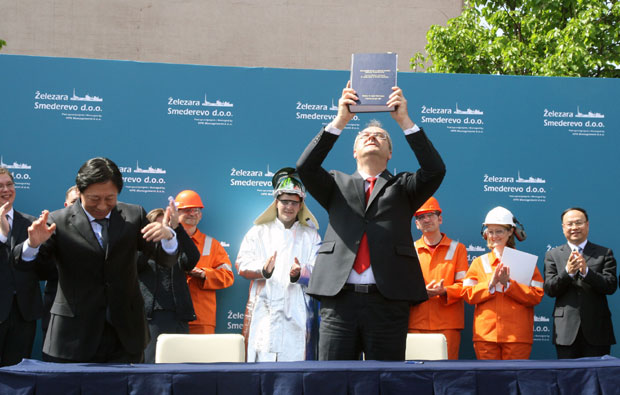 SRPSKE zastave u levoj ruci, kraj srca, a kineske u desnici, spremnoj da udarnički radi za novog kineskog investitora. Tako su radnici Železare Smederevo dočekali Kineze. Sa transparentima dobrodošlice na kineskom jeziku, i sa ogromnim očekivanjima da će im biti bolje nego do sada. Posle godina čeličenja čeličane i posebno živaca 5.000 zaposlenih, u ponedeljak su svoj potpis na ugovor o prodaji Železare Smederevo kineskoj kompaniji "Hestil" koji je, veruju ovde, spasonosan, stavili ministar privrede Željko Sertić i predsednik "Hestila" Ju Jong.