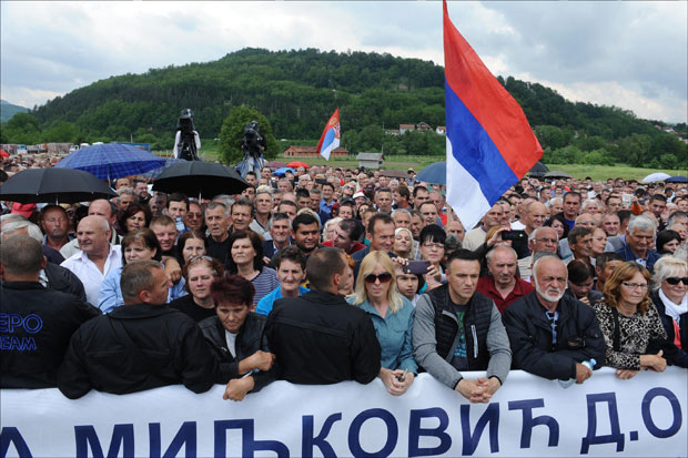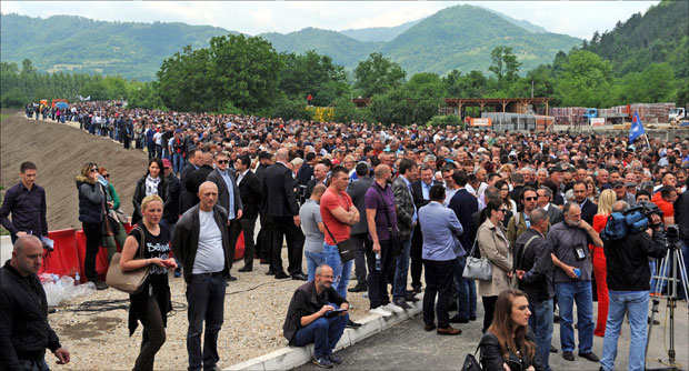 Obale reke, između Ljubovije i Bratunca, danas spojene mostom koji će biti završen u septembru. Dići most znači da nismo digli ruke od sebe i od sebi najbližih, poručio Vučić