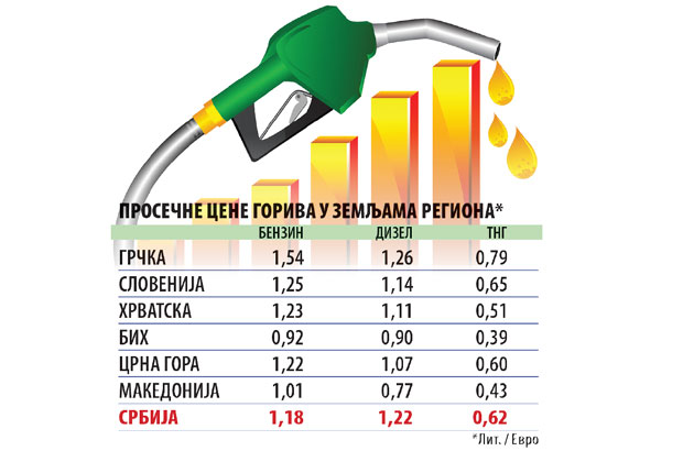 Slične promene cena goriva se dešavaju i u zemljama u okruženju, tako da su i dalje cene benzina u Srbiji na nivou regionalnog proseka, dok su cene dizela i TNG-a u samom vrhu, u prvom redu zbog izuzetno velikih državnih opterećenja.