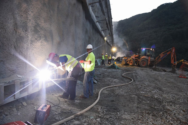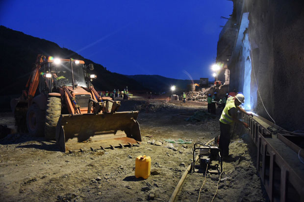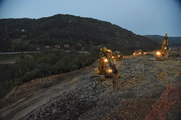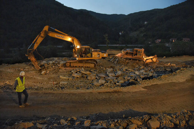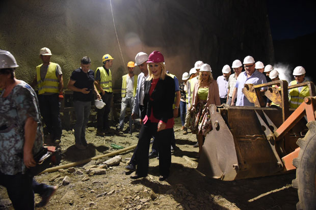 Ministarka građevinarstva Zorana Mihajlović je večeras sa direktorom "Koridora Srbije" Zoranom Babićem i "Puteva Srbije", Zoranom Drobnjakom posetila gradilište u Grdeličkoj klisuri na kojem radnici rade i u trećoj smeni