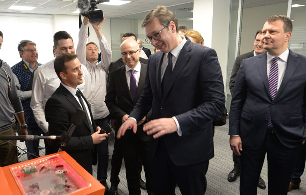 Predsednik Aleksandar Vučić na otvaranju "Kontinentalovog" Centra za istraživanje i razvoj u Novom Sadu. Nemačka kompanija angažovala 100 inženjera, a planira da otvori ukupno 500 radnih mesta