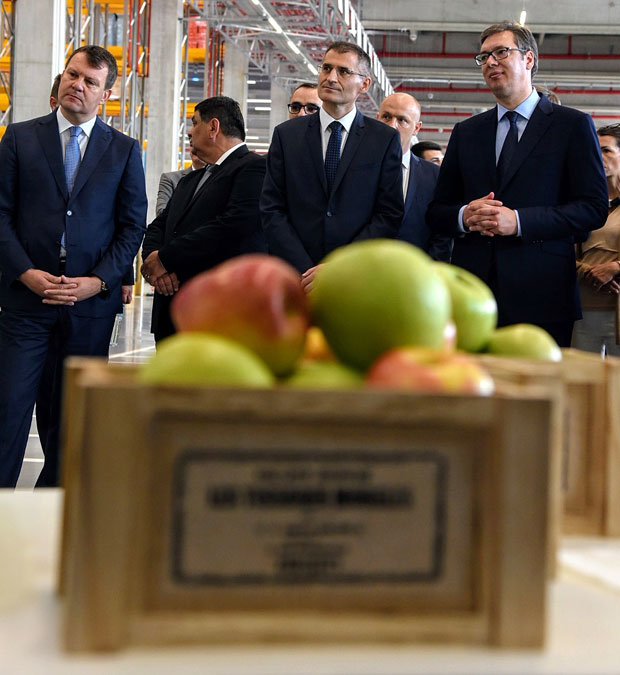 - Vrednost investicije u Novoj Pazovi je 55 miliona evra, a do kraja godine biće otvoreno 16 prodavnica "Lidla", u kojima će posao imati 1.500 ljudi od čak 23.000 onih koji su se kandidovali za rad u ovoj kompaniji - kazao je Vučić. - Građani će imati priliku da kupuju kvalitetne proizvode, što se vidi i po sistemu provere kvaliteta. Ovde se jabukama meri temperatura češće nego što čovek meri temperaturu detetu. Mere i slatkoću, tako da ono što dođe do potrošača treba da prođe teži sistematski pregled nego bilo ko od nas kad je išao u vojsku.