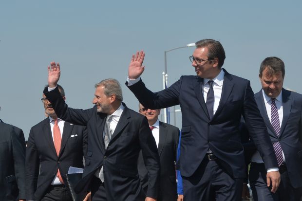 Komesar Han je istakao da je Žeželjev most najbolji simbol evropske budućnosti Srbije i njenih evropskih integracija.
