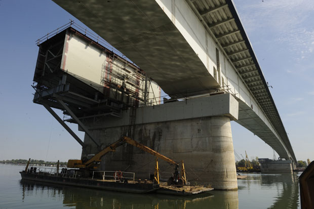 Kako kažu u preduzeću "Putevi Srbije", postavljanje središnje konstrukcije mosta moglo bi da se očekuje već sredinom decembra, jer će se tada vodostaj znatno podići. Inače, za konstrukciju dugu 586 metara, nabavljeno je i obrađeno 4.900 tona čelika.