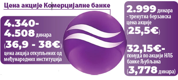 - NLB banka Ljubljana, ipak, nudi manju cenu od one po kojoj je Srbija otkupljivala vlasništvo od drugih suvlasnika Komercijalne - kaže Arsić. - Jedan od problema je što NLB nije baš najbolji kandidat za novog vlasnika Komercijalne banke. Možda bi bilo bolje da je najbolju ponudu dala neka druga banka. Ne treba po svaku cenu da gledamo samo da zaradimo, već da se obezbedi bolje upravljanje bankom.