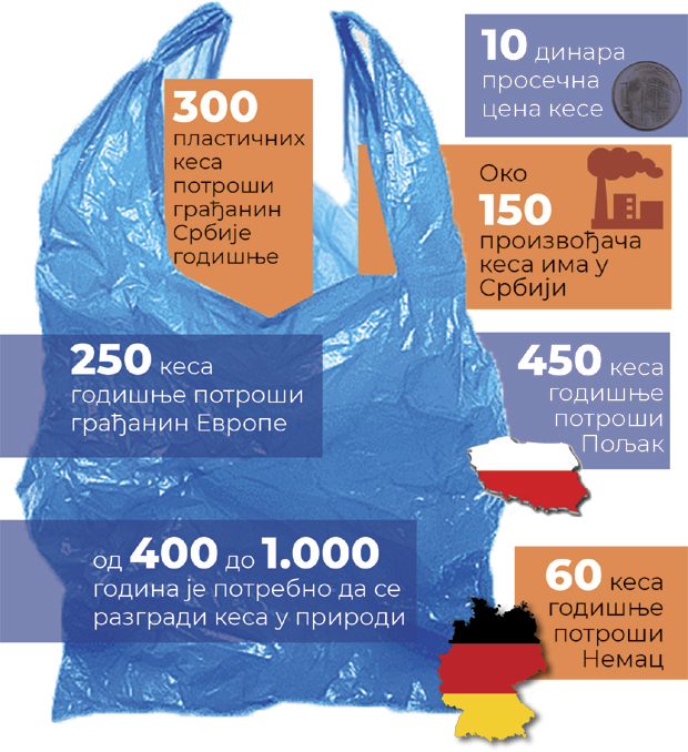 - I kese sa aditivima, koje mi uvodimo, zabranjuju se u Evropi - ističe naša sagovornica. - One se po našem pravilniku tretiraju kao biorazgradive iako nisu. U Evropi se taj standard osporava i to pokazuju najnovija istraživanja iz maja 2019. godine, koja su stigla i do Parlamenta EU. Čak i u zemljama u regionu, gde se koriste, ne sme da stoji oznaka da su biorazgradive. Naše fabrike za izradu plastičnih kesa morale su da dodaju taj aditiv, kako bi dobile beneficije od države. Plaćaju taksu na uvoz polietilena 1.500 dinara po toni, a ako nisu sa aditivima 20.000 dinara. Na kraju, sve kese, da bi se efikasno uklonile, moraju da stignu do fabrika za reciklažu, a ne da se nalaze na deponijama i po ulici. Sve se mora razgrađivati pod kontrolisanim uslovima u fabrikama.