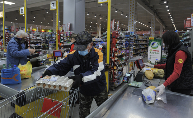 Disciplinovani, zaštićeni maskama i rukavicama, kupovali su namirnice i sredstva za higijenu za naredne dane izolacije.