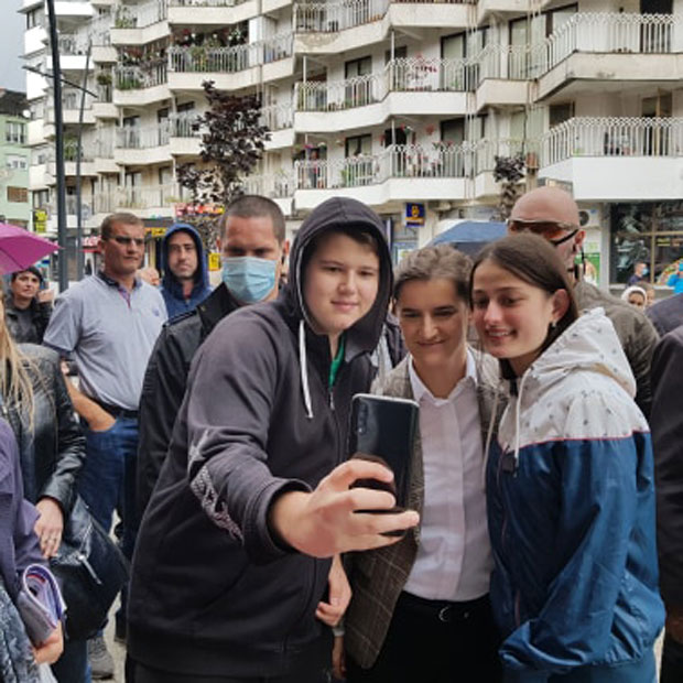 Nakon obilaska farbrike premijerka je prošetala centrom Aleksinca gde se družila sa mnogobrojnim građanima koji su joj povervali svoje probleme ili su jednostavno hteli „selfi“ za uspomenu.