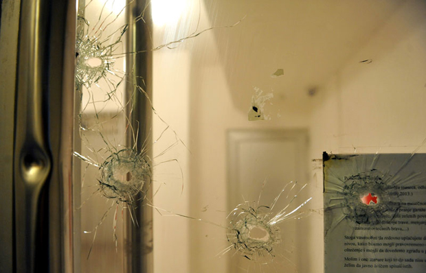 U garaži zgrade su još sveži tragovi ubistva. Vrata koja iz podzemnog parkinga vode do lifta zgrade potpuno su izrešetana. Objekat je, inače, obezbeđen video-nadzorom, i sa spoljne i sa unutrašnje strane, a i hodnik u kome je Cetinjanin izrešetan pokriven je sigurnosnim kamerama.