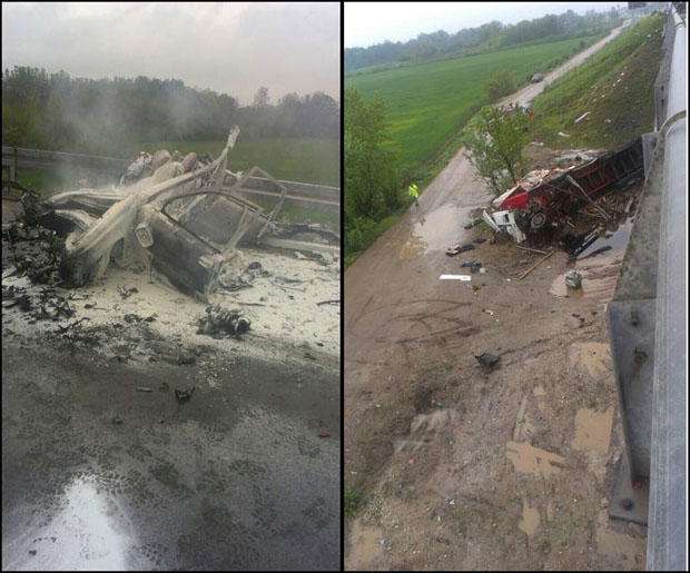 Kako smo saznali, do nesreće je došlo kada je automobil "volvo", iz zasad neutvrđenih razloga, vozio velikom brzinom pogrešnom trakom auto-puta, direktno se sudarivši sa teretnim vozilom. Od siline udarca, kamion je probio bankinu, sleteo sa nadvožnjaka i zaustavio se na poljskom putu. Kola su se zapalila odmah nakon sudara, vozač je ispao iz "volva" i smesta izdahnuo. Kamiondžija je podlegao povredama nekoliko sati kasnije, po prijemu u bolnicu.
