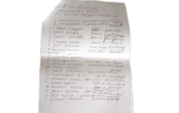 Nakon što su meštani sakupili novac za asfaltiranje, tadašnjem izvođaču radova skupljenu sumu predao je Zlatimir K., pa je njegovo ime navedeno na priznanici, jer na nju nisu mogla da stanu imena svih ljudi koji su dali novac.
