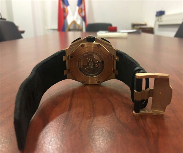 Tada su u ručnom prtljagu, osim ličnih stvari, pronašli potvrdu o povraćaju poreza i račun za sat marke "Audemars Piguet", izdate i overene tog istog dana u Sloveniji, na ime pomenutog putnika.
