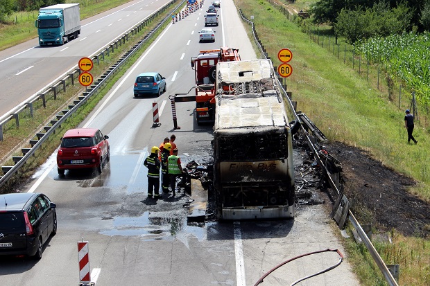 Na autoputu Beograd - Niš kod Jagodine, danas je izgoreo putnički autobus, nema povređenih, a u kolovoznoj traci prema Nišu je kilometarska kolona vozila.
