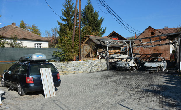 Automobili „golf7" i ''be-em-ve'' iz serije pet, vlasništvo Tekije Fetahija, pekara iz severnog dela Kosovske Mitrovice, potpuno su izgoreli prošle noći