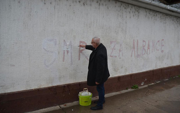 U CRVENKI je danas osvanuo grafit preko celog bočnog zida porodične kuće Januza Brahaja, vlasnika pekare ML. Pisalo je: "Smrt za Albance. Krv za krv. Oliver. Januar 2018", a zlokobnu parolu su vrlo brzo prekrečili opštinski čelnici i komšije.