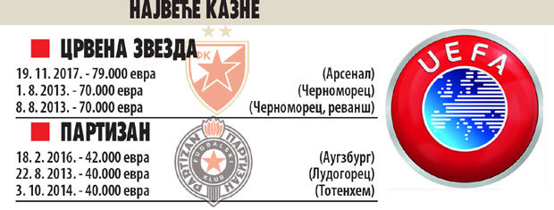Crvena zvezda je naš klub koji je bio najviše na tapetu UEFA zbog ispada navijača, iako je jedina sa ovih prostora učestvovala u radu disciplinske komisije evropske kuće fudbala.