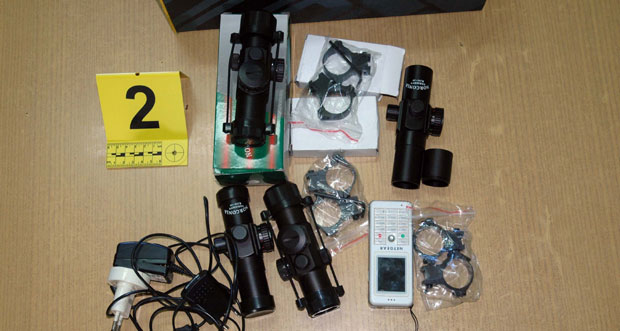 Takođe, policijski službenici su nakon pretresa stana koji je koristio osumnjičeni T. T. pronašli revolver i samostrel, a u stanu osumnjičenog S. I. četiri optička nišana za oružje, šest nosača za optički nišan i mobilni telefon za koji se sumnja da se koristi prilikom postavljanja eksplozivnih naprava. U stanu osumnjičenog J. N. pronađeno je i 13 prigušivača za vazdušne puške, kao i 55 optičkih nišana za ručne bacače granata.
