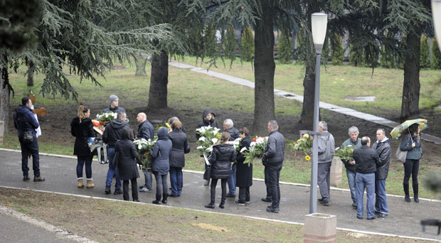 U trenutku kada je spuštan u grob majka, koja je neprekidno plakala, čvrsto se uhvatila za sanduk, a sve vreme ju je pridržavao suprug. Lica skamenjenih od bola, tešili su jedno drugo. Nad grobom govor niko nije održao, već se okupljena rodbina od Nebojše oprostila uz poslednju grudu zemlje koju su bacili u raku. U tišini su položili cveće, koje je prekrilo grob. Roditelji su nemo posmatrali grobno mesto sina.